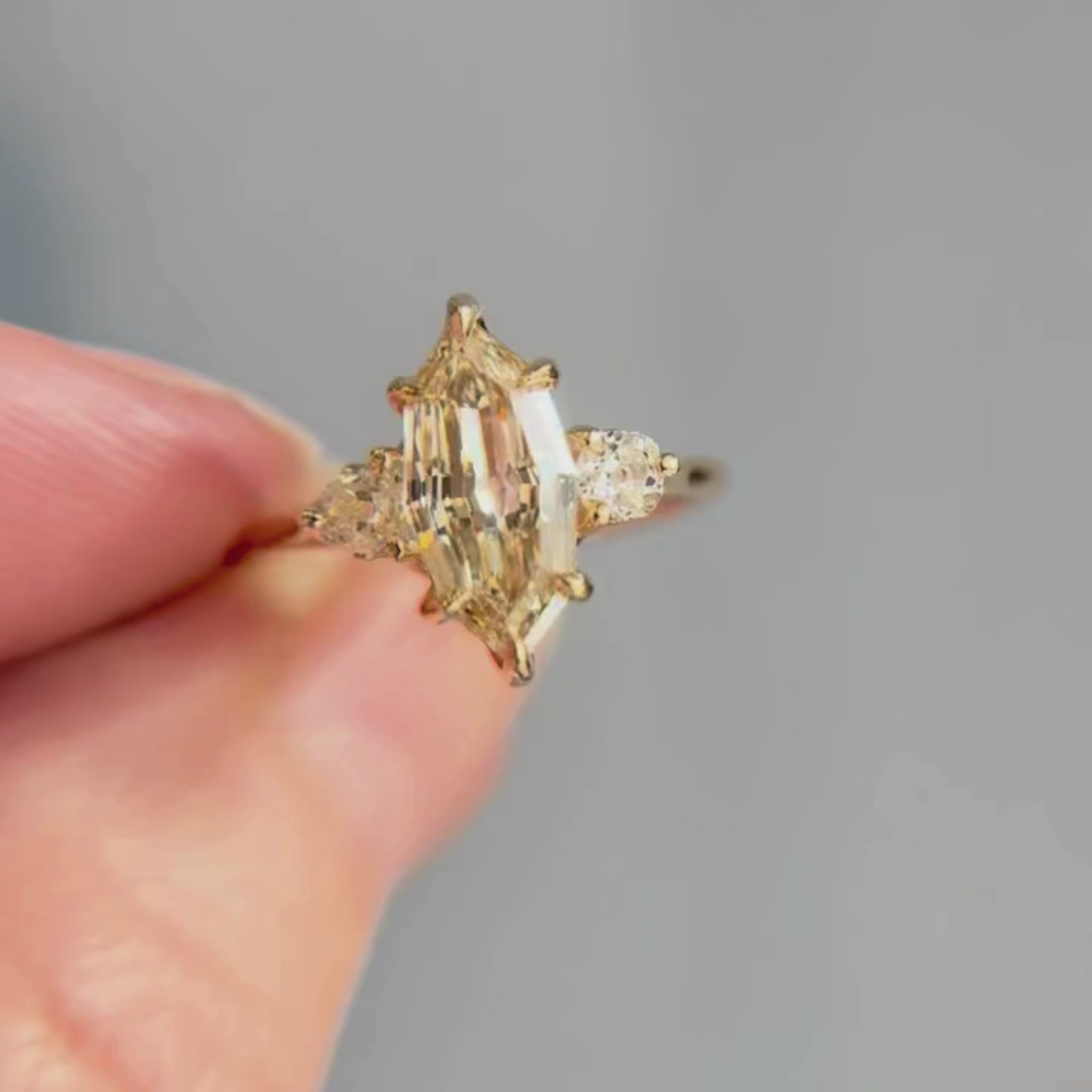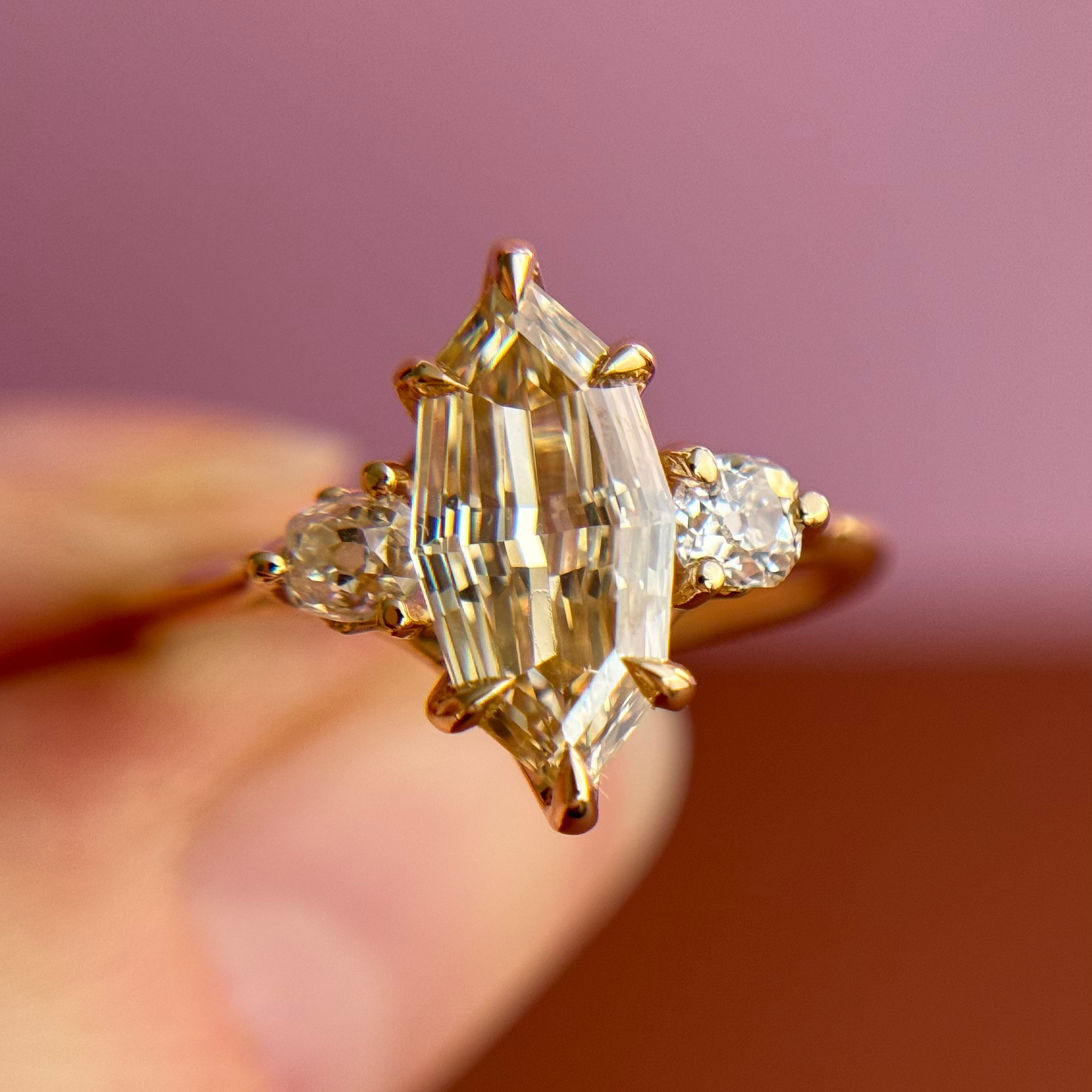 Grab a glass and get ready to sparkle with this Champagne Marquise Diamond version of Jil's Fave Cosmo Trio Ring. A 3-stone engagement ring guaranteed to take your breath away, she's decadent and expertly crafted to sparkle on your finger.
