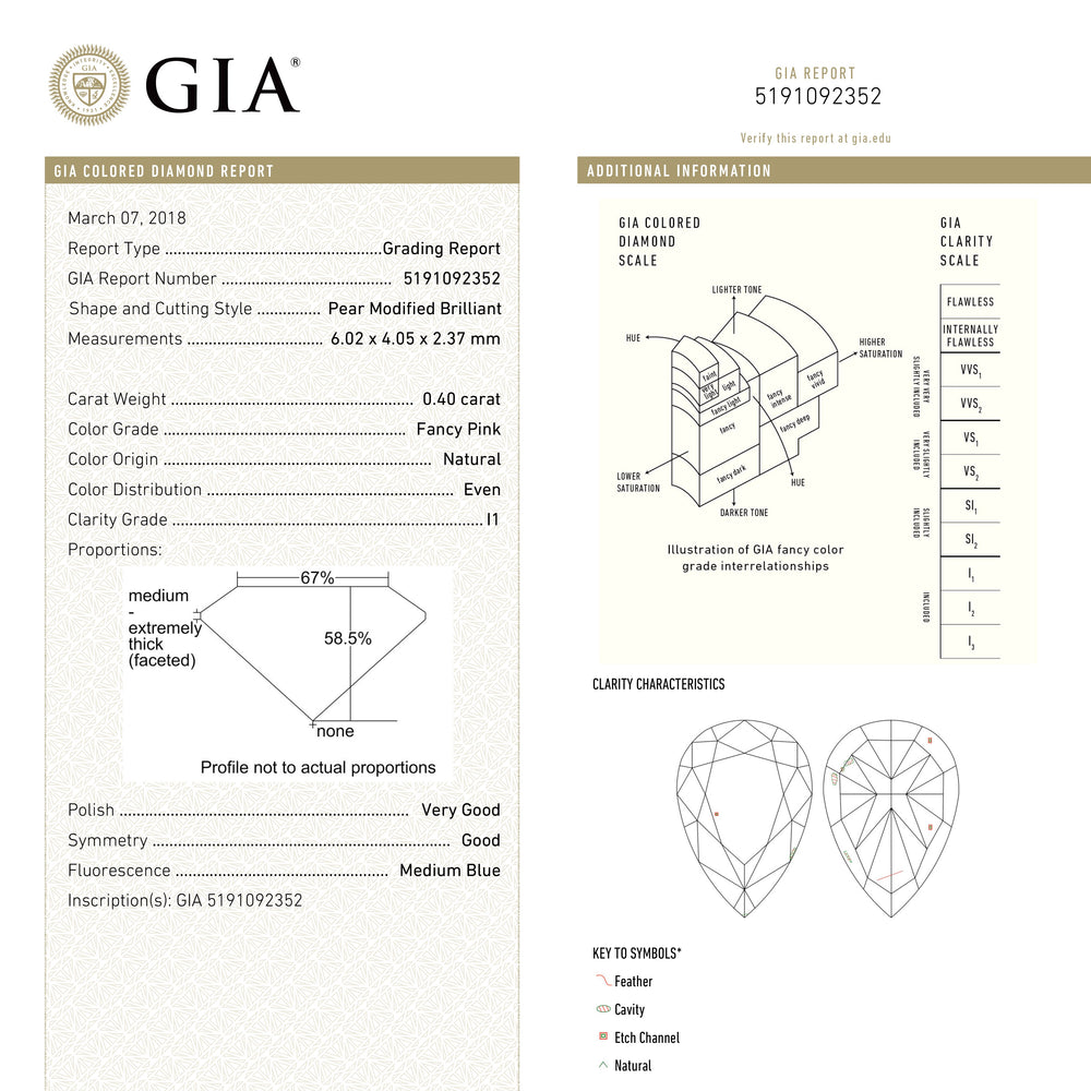 0.40ct 6.02x4.05x2.37mm GIA I1 Fancy Pink Pear Brilliant 🇦🇺 24128-01