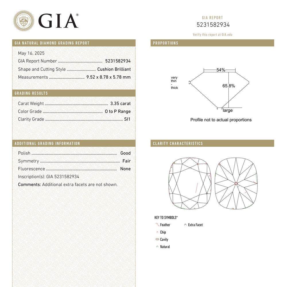 3.35ct 9.52x8.78x5.78mm GIA SI1 O-P Antique Old Mine Cut 26771-01